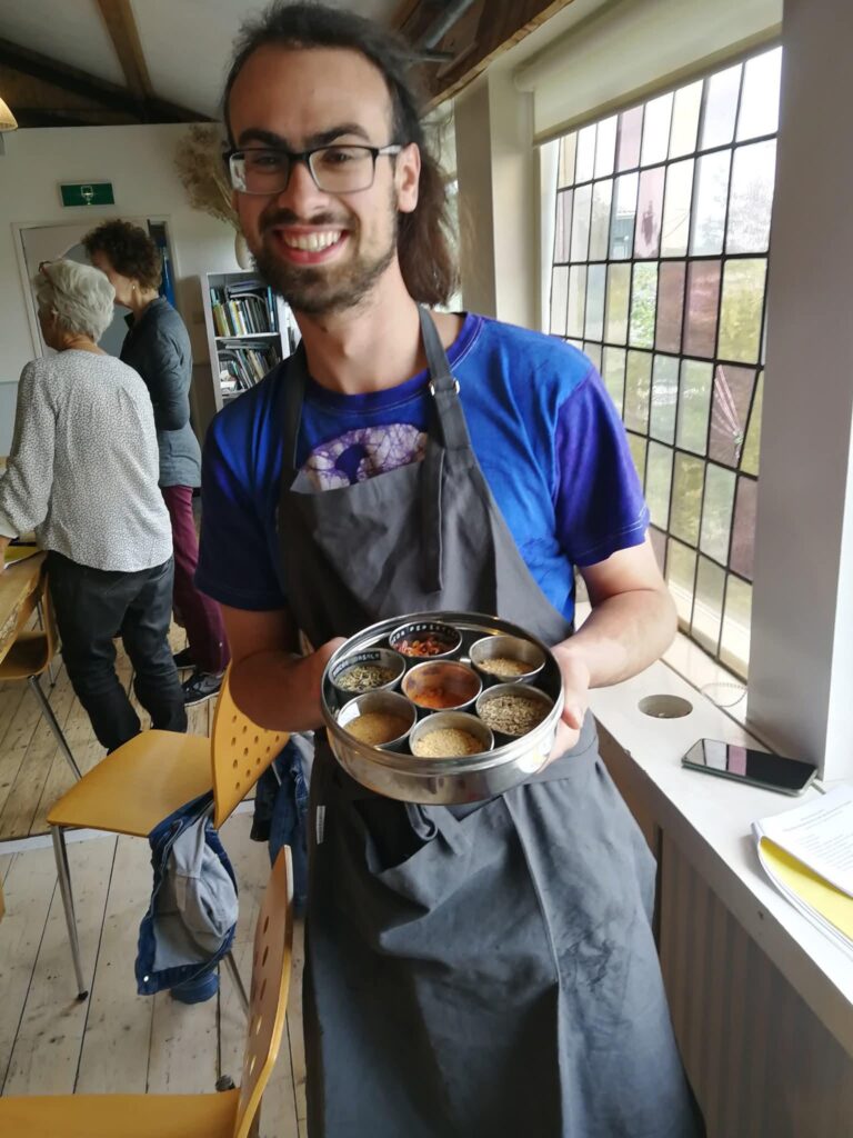 Ondanks dat de (Ayur)Vedische keuken een steeds diepere plek in mijn hart kreeg, kreeg ik ook enorme interesse in andere keukens. Ik werkte een tijdje als kok in een vegan Surinaams restaurant, maar kookte ook graag andere keukens: Thais, Mexicaans, Ethiopisch, Europees, en eigen creaties. Vegetarisch koken werd zo een belangrijk onderdeel in mijn leven, dat dit soms clashte met mijn studie. Ik deed anderhalve bachelor Frans en Filosofie en besloot in 2024 de tweejarige docentenopleiding Frans te volgen.
